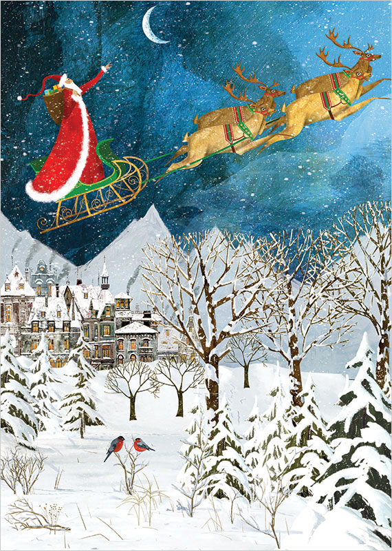 Magical Flight are Gloss finished and suitable for corporate, business, company or personal use. 025-020 is a perfect choice for small to large companies. Our Magical Flight Christmas cards are printed onto a premium thickness board, acquired only from sustainable sources and produced in the UK. Your inside personalisation is peronalised directly onto the card. Magical Flight are sized at 148x210mm.